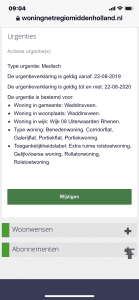 Op maandagmorgen 26 augustus 2019 kreeg ik het telefoontje van de toetsingscommissie: de urgentie is toegekend. Nicolas heeft woonurgentie gekregen op basis van medische gronden. Onze aanvraag, ook al was deze door het aandringen van onze juristen bij de woningbouwvereniging, had succes. De medische noodzaak was aantoonbaar en het dossier volledig. De snelheid van de beslissing heeft ons ook verbaasd. Nicolas kan nu, na de operatie in ieder geval gerust revalideren en mobiel blijven in zijn woning. Ik zal vanwege de privacy van Nicolas zijn achternaam niet delen. Ik zal de woonurgentie, zoals geïnstalleerd op Woningnet, delen.